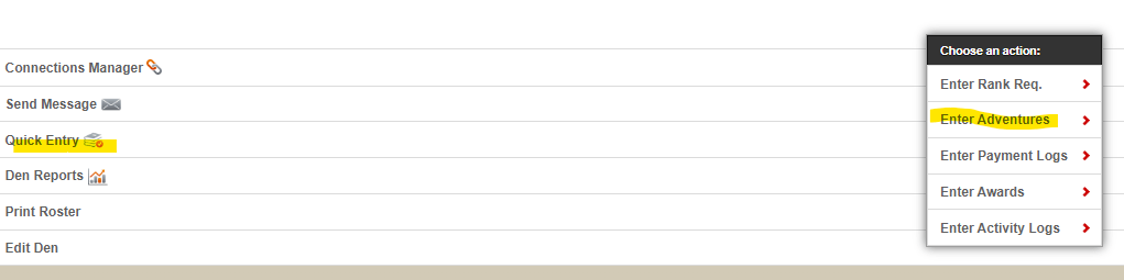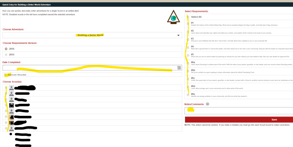 If you’re the den leader, click on Approved/Recorded