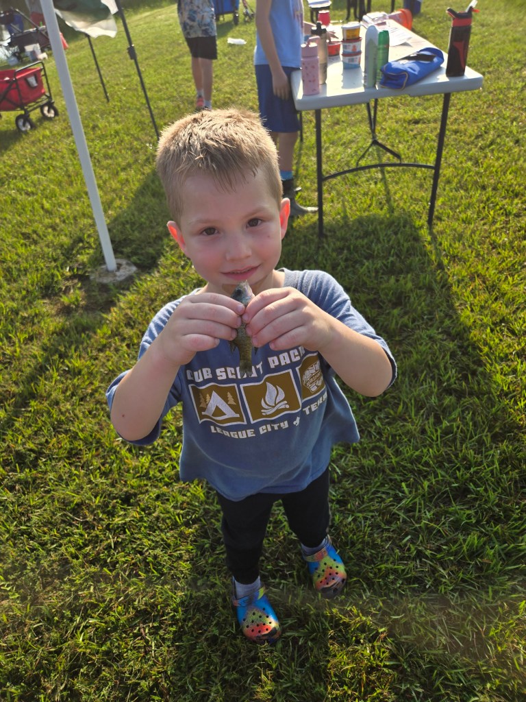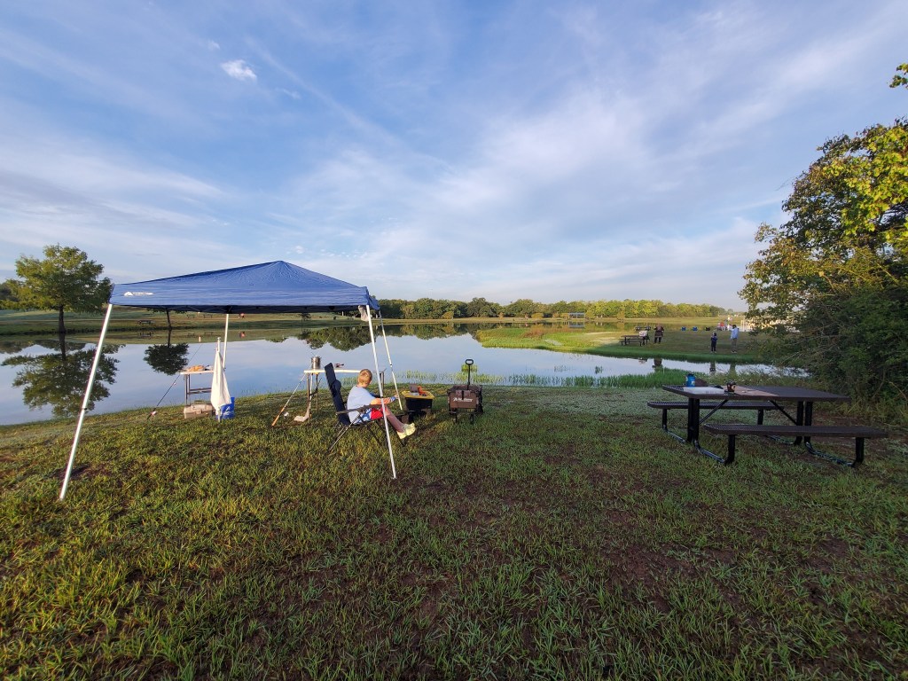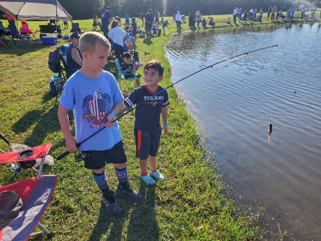 We’ve found the far side of the pond to be the best spot for our Scouts and families. There’s a picnic table, nearby trash cans, and the weigh station close at hand. It’s also much less crowded than the front side, giving everyone more space to fish comfortably.