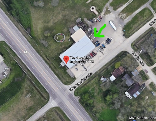 The Post has a gravel parking lot and grassy parking areas with gravel driving lanes. Be careful not to block someone in. Try to avoid muddy areas when the ground is wet. The Hall entrance is on the side of the gravel lot.